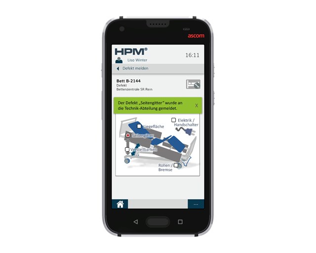 Für das Bettenmanagement setzt das UKB beispielsweise auf die HPM-Software von CLINARIS GmbH, einem Technologie-Partner von Ascom. Mit dem professionellen Barcode-Scanner im Myco 3 werden die Betten gescannt, wodurch Informationen zum Betten-Stellplatz, sowie zum Zustand und Hygienegrad der Betten, zur Verfügung stehen.
