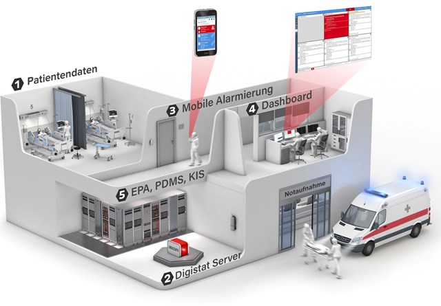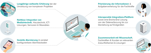 Die herstellerunabhängig aus medizintechnischen Geräten gewonnenen Informationen und Alarmierungen ermöglichen ein strukturiertes und mobiles Alarmmanagement mit einer gezielten Ablaufsteuerung für ein effizientes Entscheidungs¬unterstützungssystem mit weitreichenden Möglichkeiten, die Prozesse in Kliniken digital und effizient auszurichten.