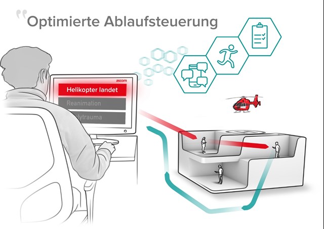 … beispielsweise bei der strukturierten Ascom Notfallteams Alarmierung mit Ortung der Alarmsetzung. Anwendungsbeispiele: Reanimations-Notruf, Teamruf zur Schwerverletzten-Versorgung oder auch bei der Sectio-Alarmierung.