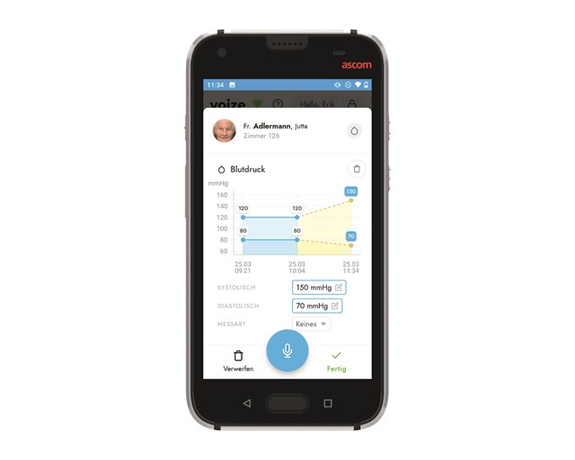 “Blutdruck Frau Maier 150 zu 70”. Das war es schon. Die Dokumentation per Sprachbefehl ist verblüffend einfach. Mit voize können Pflegekräfte die Dokumentation frei in das Smartphone einsprechen, direkt bei der Pflege. Die Künstliche Intelligenz von voize erstellt die richtigen Einträge in Ihrem Dokumentationssystem wie z. B. Vivendi PD oder Vivendi Mobil. Durch die intuitive Benutzung und die Integration in Ihre Softwarewelt ist voize besonders einfach zu implementieren und entlastet Ihre Pflegekräfte spürbar. So bleibt mehr Zeit für die Pflegebedürftigen.