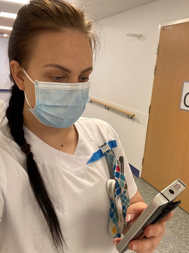– Lääkintälaite- ja muut hälytykset välittyvät suoraan mukanamme kulkevaan älypuhelimeen, joten olemme jatkuvasti tietoisia potilaidemme voinnista. Osastollamme on paljon muistisairaita, joten käytössämme on myös potilaiden liikkumista valvovia järjestelmiä. Puhelimen hälytyssovellus ilmoittaa heti, jos dementiapotilas lähtee harhailemaan porraskäytävään tai vuodepotilas nousee sängystään.