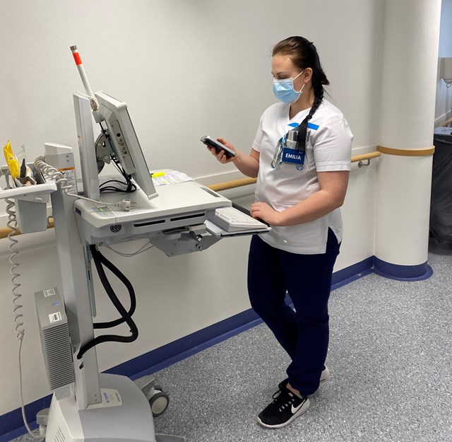 – Olemme päässeet eroon turhasta työstä eli esimerkiksi potilastietojen tuplakirjauksista. Aiemmin arvot kirjattiin käsin potilashuoneessa ja sen jälkeen kansliassa tietokoneelle. Nyt erillisiä lippuja ja lappuja ei enää tarvita, vaan kaikki potilastiedot kirjataan suoraan potilastietojärjestelmään Myco-älypuhelimen avulla.