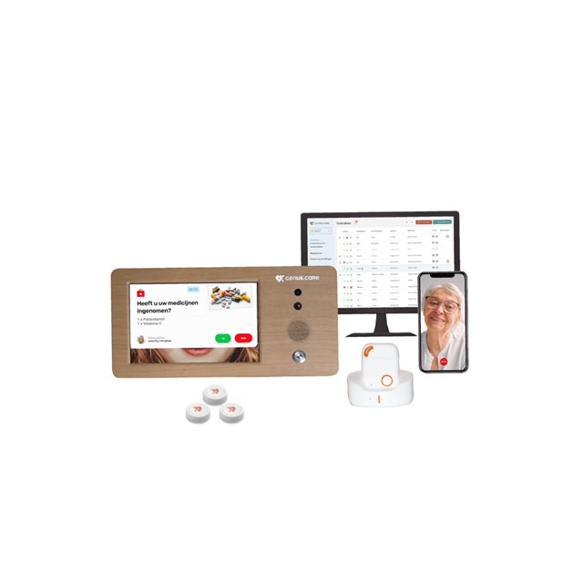 Genus Care is een compact en slim zorgapparaat dat eenvoudig in de woonkamer of slaapkamer kan worden geplaatst, en cliënten dagelijks ondersteunt via beeld, geluid en slimme technologie. Met beeldzorg is er eenvoudig contact op afstand tussen cliënten, zorgverleners en familie. Cliënten hebben inzicht in afspraken en herinneringen, wat zorgt voor dagstructuur en meer ritme en rust. Sensoren signaleren het leefpatroon en melden afwijkingen direct. En dankzij een mobiele alarmknop kunnen zorgverleners direct gealarmeert worden, wat een veiliger gevoel geeft.