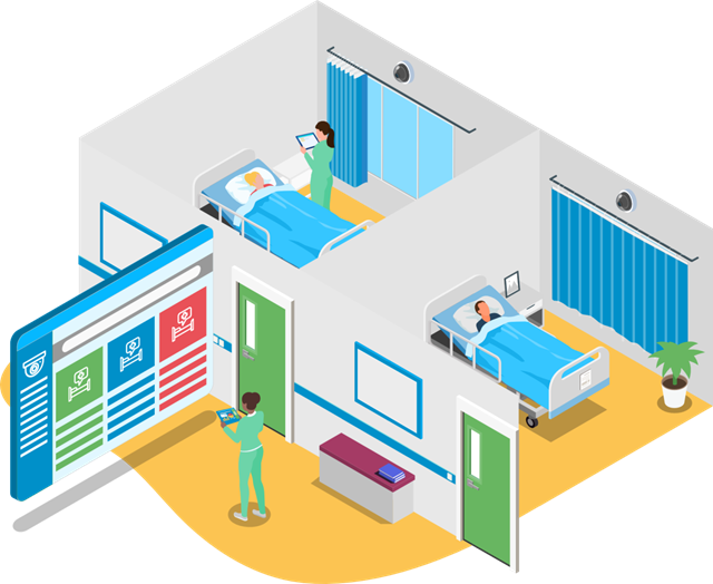 Volg statusupdates van de kamer en de cliënt. Ligt de cliënt in bed, in de kamer of verlaat hij de kamer?