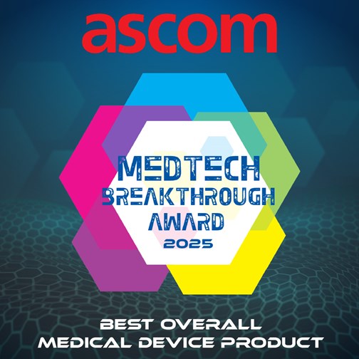 Ascom, a global solutions provider focused on healthcare ICT and mobile workflow solutions, today announced that it has been selected as winner of the “Best Overall Medical Device Product” award in the 9th annual MedTech Breakthrough Awards program conducted by MedTech Breakthrough, an independent market intelligence organization that recognizes the top companies, technologies and products in the global digital health and medical technology market.