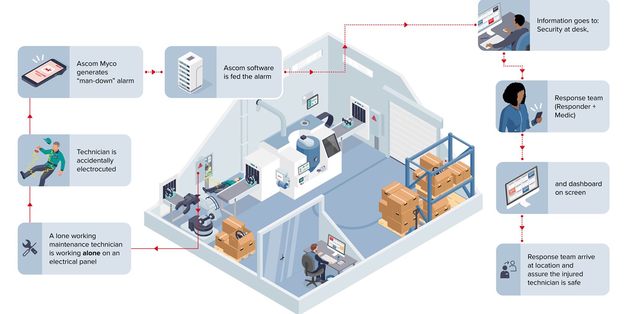 Ascom provides a true single-supplier solution for lone worker safety. The solution is based on mobile devices with in-built staff safety features such as automatic man-down, no-movement and countdown alarms, panic buttons, real-time location technologies, alarm dashboards, incident mapping and mobile response workflows. With the goal to support lone workers and ensure responders can react to an emergency as quickly and effectively as possible.